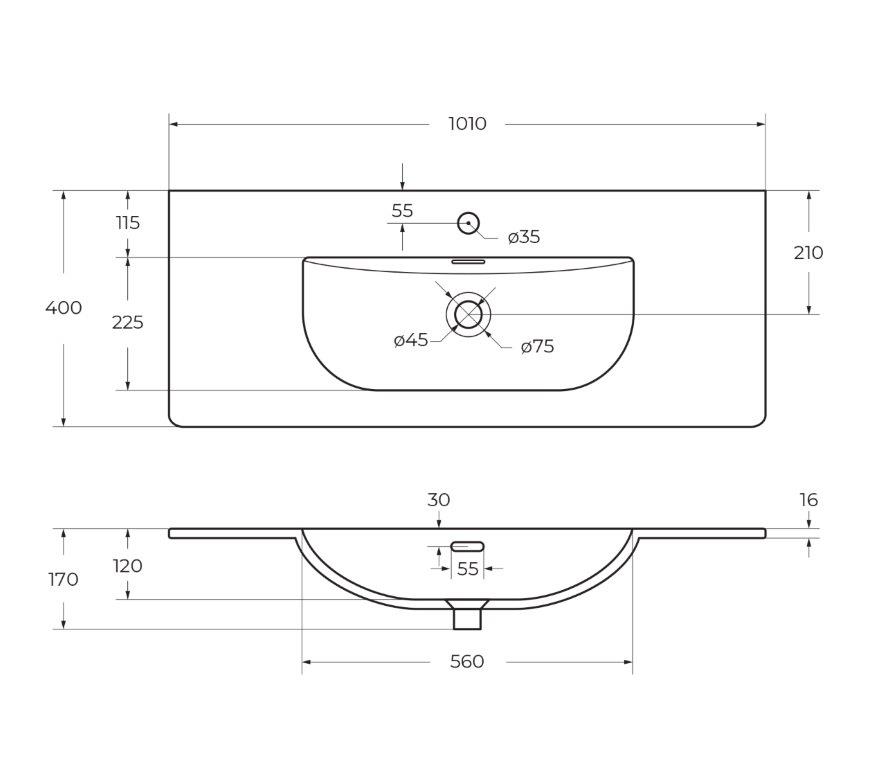 Керамическая раковина BB-8099-3-100, 1010x400x170