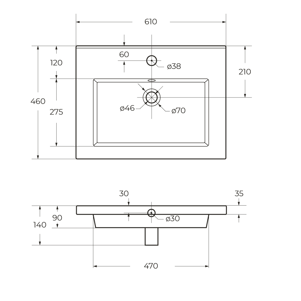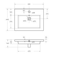 Керамическая раковина CZR-8070-60, 610x460x140