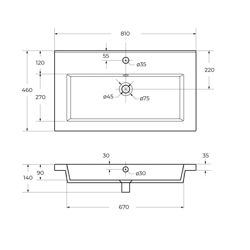 Керамическая раковина CZR-8070-80, 810x460x140