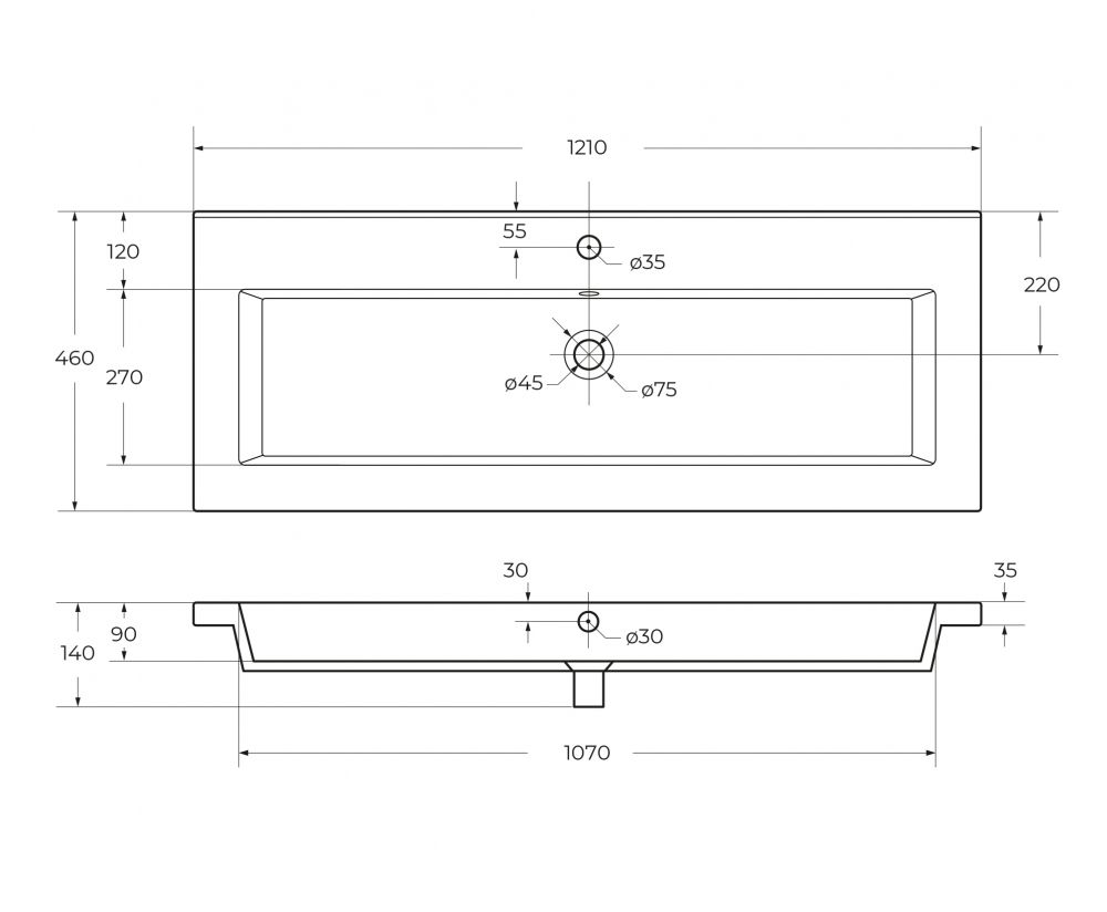 Керамическая раковина CZR-8070-120, 1210x460x140