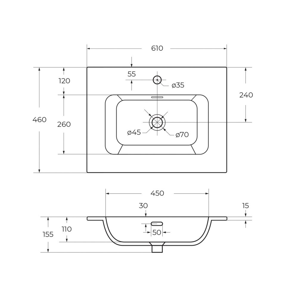 Керамическая раковина CZR-8073-60, 610x460x155