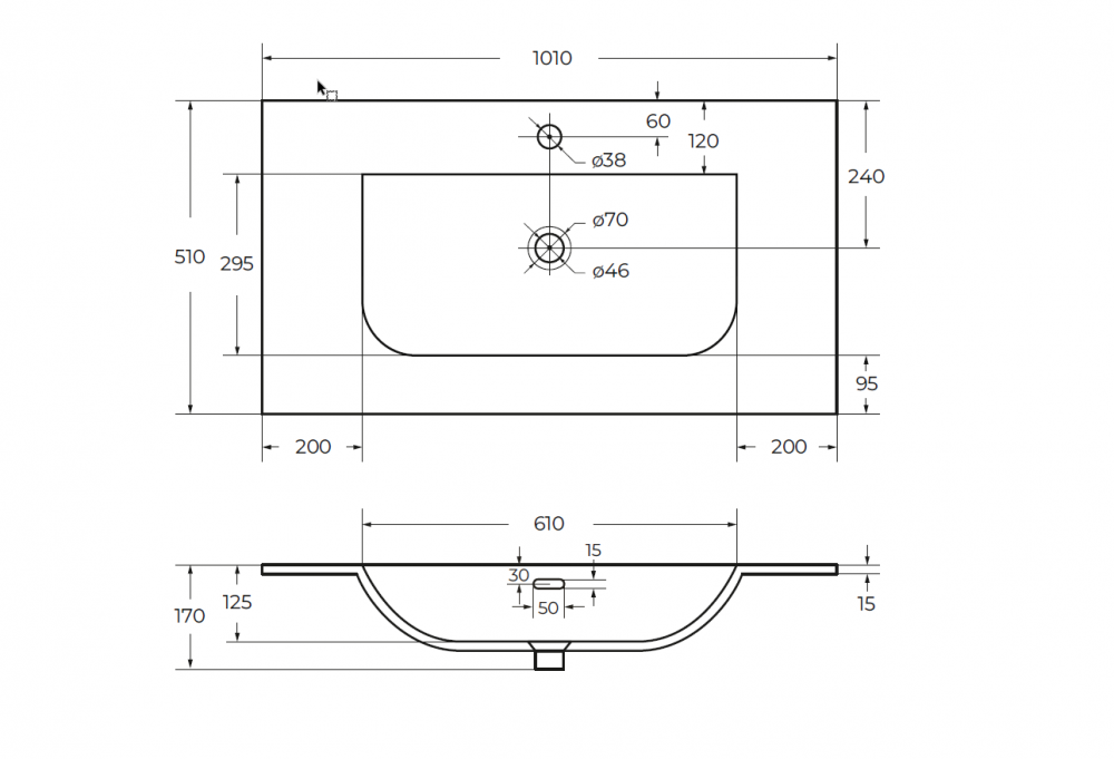 Керамическая раковина CZR-8099-100/50, 1010x510x170