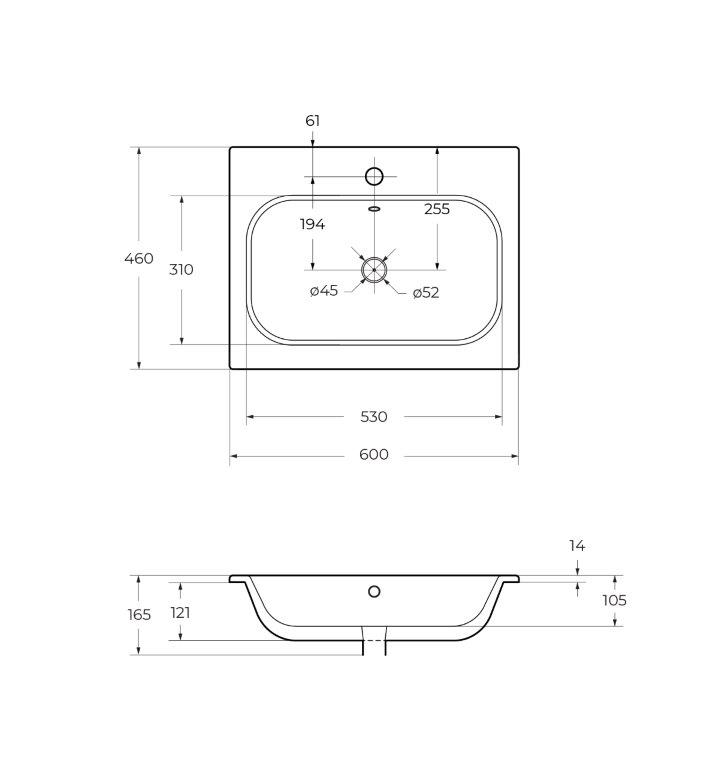 CEZARES Раковина керамическая 60 см, CZR-NAT-60-LVB