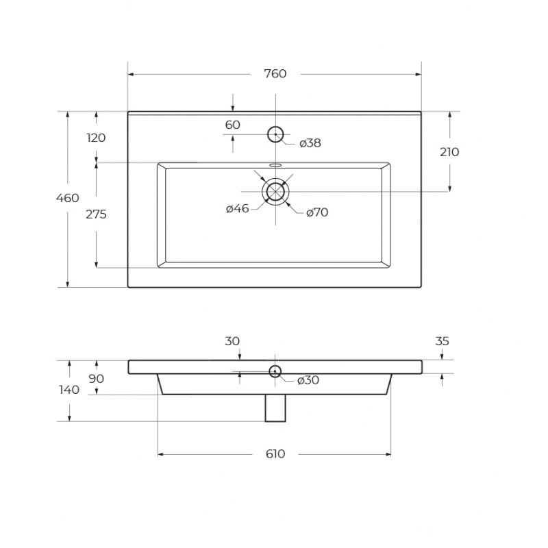 Керамическая раковина Cezares CZR-8070-75, 760x460x140