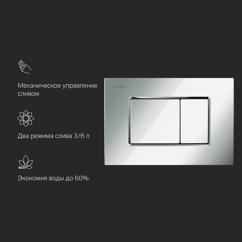 Двойной смыв - 3/6л. Механический принцип работы все крепления в комплекте. Клавиша подходит для инсталляции AM.PM ProC арт. I012707. ""