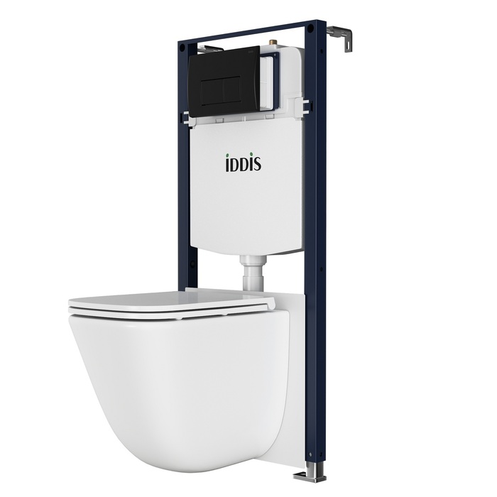 Комплект 3в1: подвесной унитаз, инсталляция и черная клавиша смыва, Basic, IDDIS, BASTQ02i73