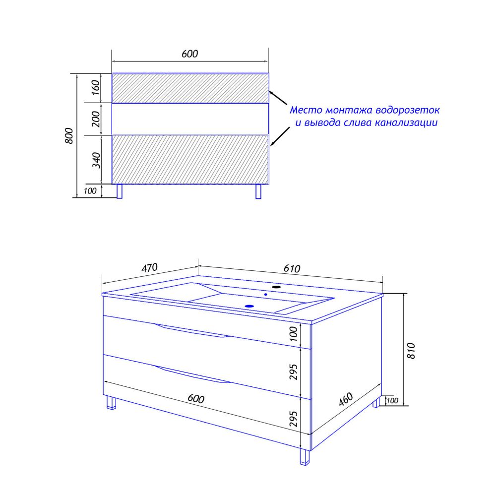 Комплект Тумба Loranto Santorini 60 610х460х810 напольная, с раковиной MONTE Neo 60, Белый Глянец (CS00105567)
