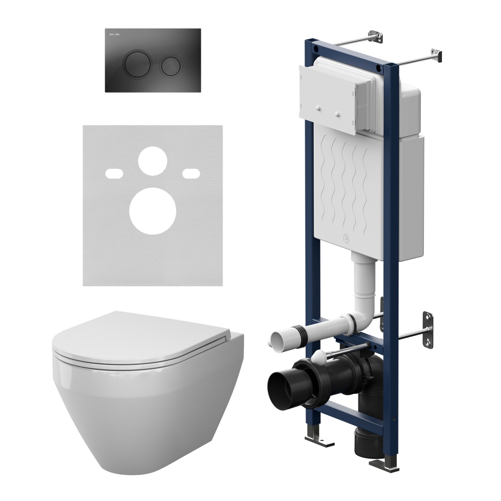 Максимально полный комплект поставки включающий все необходимые крепления патрубки звукоизолирующую прокладку. Экономия пространства благодаря узкой раме – 352 мм шириной. Подходит даже для самых малогабариnных ванных комнат. Заливной клапан с низким уровнем шума - Класс II согласно европейского стандарта EN 14124. Рама выдерживает нагрузку до 500 кг. Внутреннее сечение профиля 3 мм обеспечивает надежность и долговечность конструкции. Подходит для унитазов любых размеров. Высокая прочность и износостойкость. Подключение воды сзади сверху. В комплекте механическая двухрежимная клавиша из ABS пластика в цвете матовый черный. Выверенный геометрический дизайн - идеально ровные поверхности с четкими гранями - отмечен премиями iF Design и Good Design. AquaSpin - новая система смыва последнего поколения-более эффективное омывание чаши гигиеничность и экономия воды до 50% - в сравнении с классическими видами омывания выверенная геометрия гарантирует отсутствие брызг минимум рельефа внутри чаши обеспечивает пониженный уровень шума при смыве и дополнительную лёгкость в уборке. Дизайн смыва разработан немецким агентством Brandis. В комплекте быстросъемное сиденье из дюропласта с механизмом плавного закрывания. Материал сиденья дюропласт устойчивый к появлению царапин в сочетании с креплениями из нержавеющей стали гарантируют долговечность сиденья.