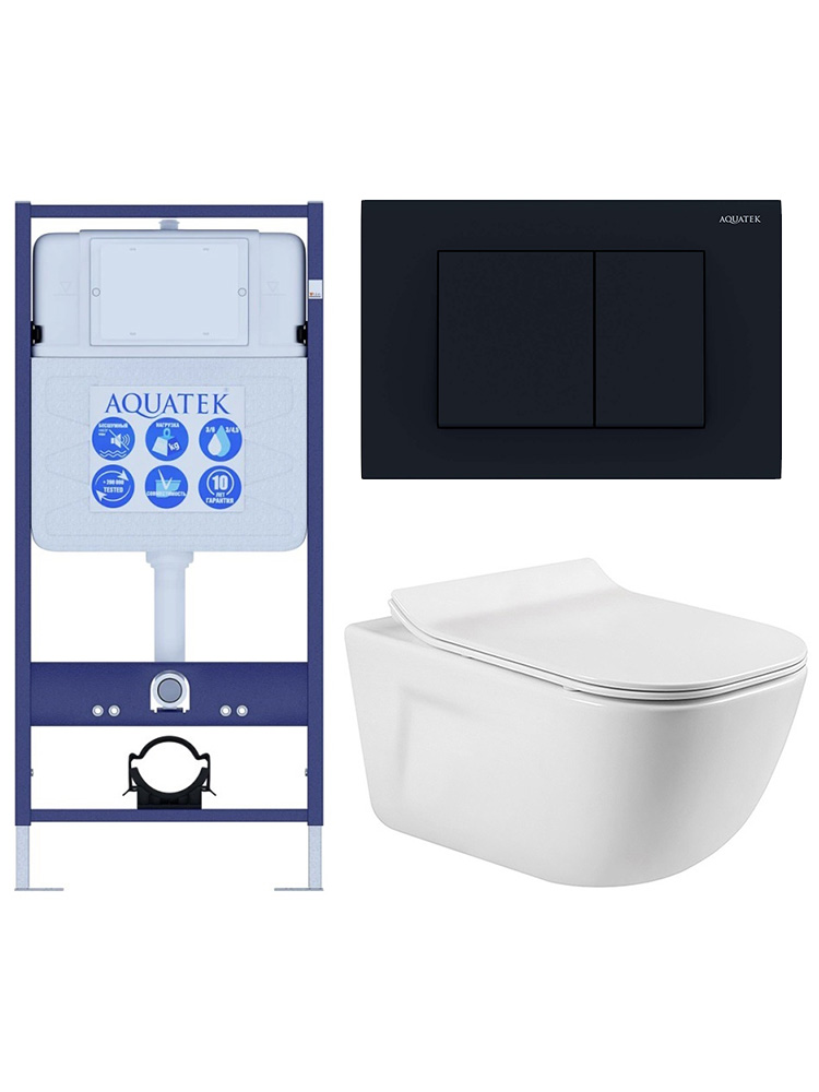 SET AQUATEK ДИВА-012 4в1 (рама AQUATEK Standard INS-0000012+ крепеж KKI-0000002+клавиша KDI-0000012+унитаз ДИВА AQ2012-00 с тонким сиденьем soft-close