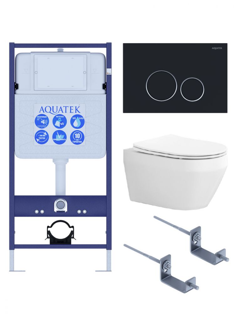SET AQUATEK ЛЕЯ Т (рама AQUATEK Standard INS-0000012, клавиша KDI-0000020 ,KKI-0000002 крепёж+унитаз ЛЕЯ AQ1199T-00 с тонким сиденьем soft-close