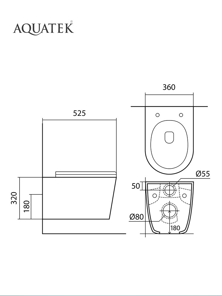Set AQUATEK ВЕГА (рама AQUATEK Standard INS-0000012 с звукоиз.прокладкой+крепеж KKI-0000001+кнопкаKDI-0000017+унитаз ВЕГА AQ1905-MB с крышкой-сиденьем