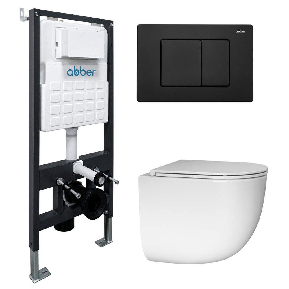 Комплект подвесной унитаз ABBER Bequem AC1132TC белый, AC1132TC-AC0105-AC0120MB черный матовый