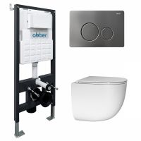 Комплект подвесной унитаз ABBER Bequem AC1132TC белый, с закрытым дном с инсталляцией AC0105 и кнопкой AC0121NG никель