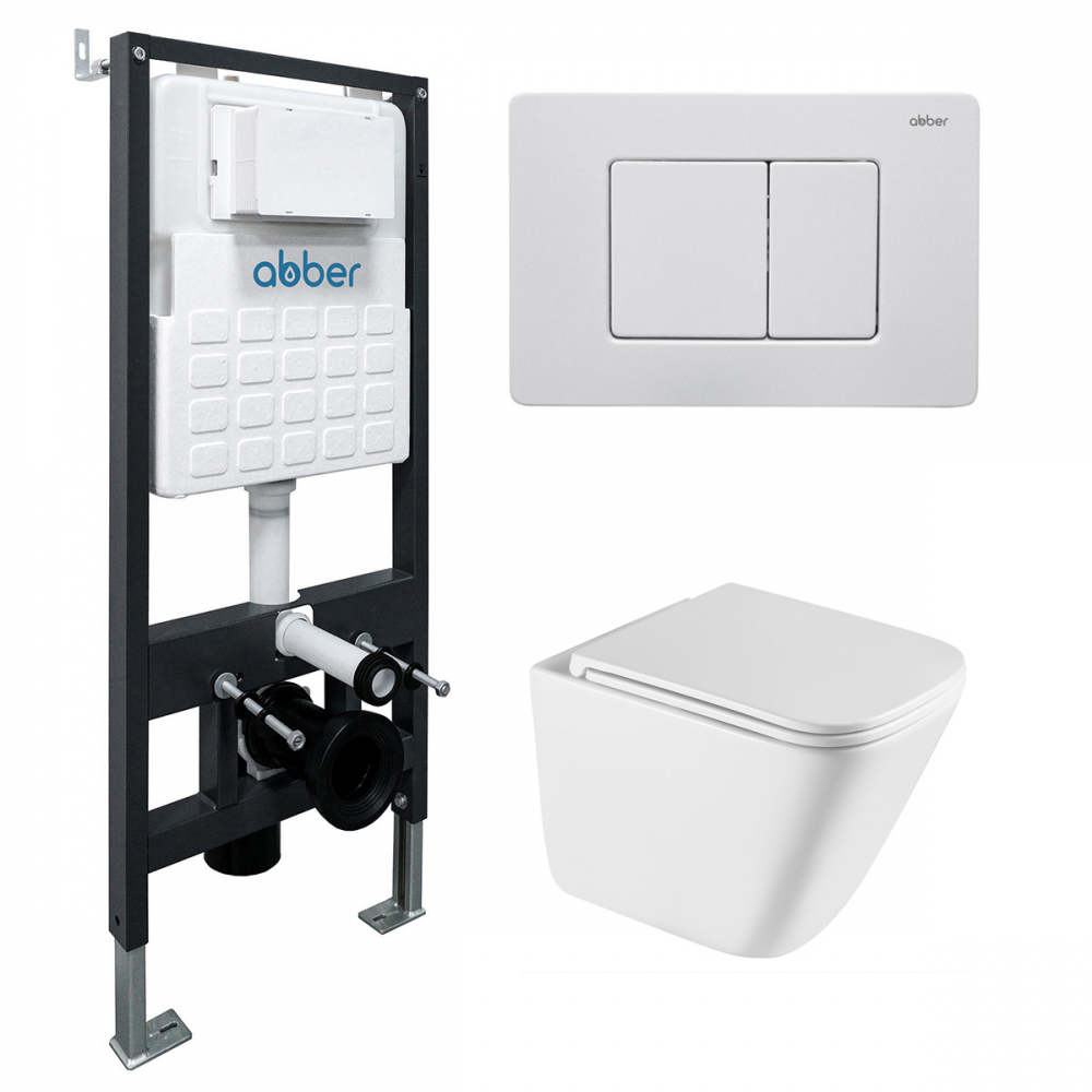Комплект подвесной унитаз ABBER Rechteck AC1219TC белый, AC1219TC-AC0105-AC0120MW белая матовая