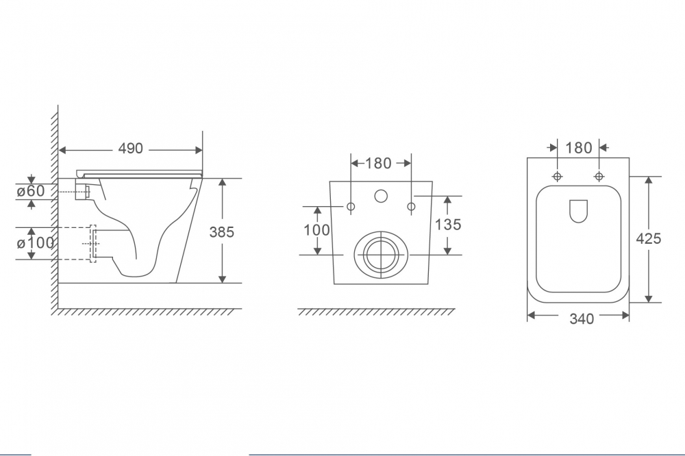 Комплект подвесной унитаз ABBER Rechteck AC1219TC белый, AC1219TC-AC0105-AC0121 хром глянцевый