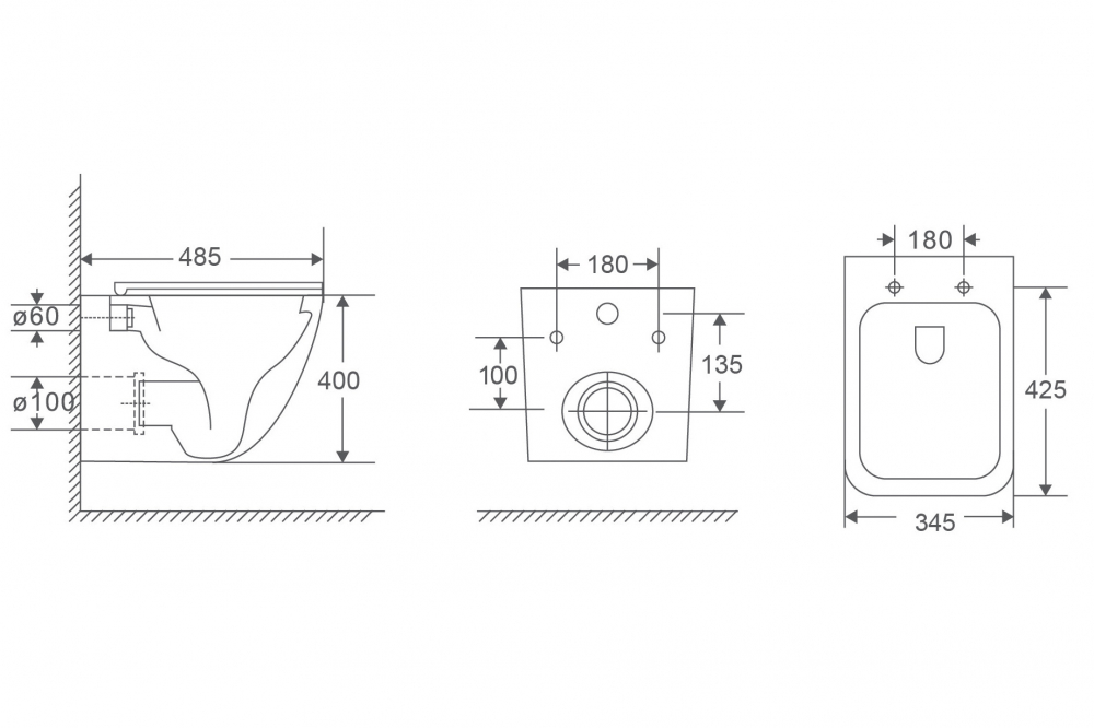 Комплект подвесной унитаз ABBER Rechteck AC1220TC белый, AC1220TC-AC0105-AC0121NG AC0121NG никель