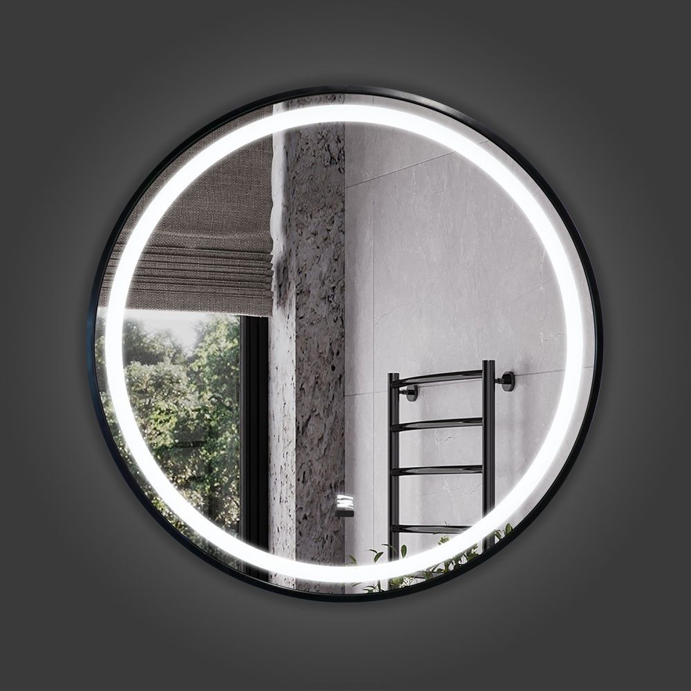 Круглое зеркало в черной алюминиевой раме Comforty Лея-60 LED-подсветка, бесконтактный сенсор