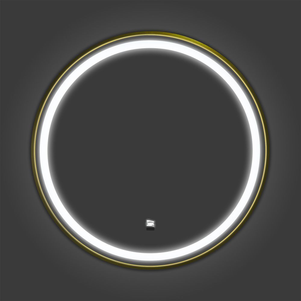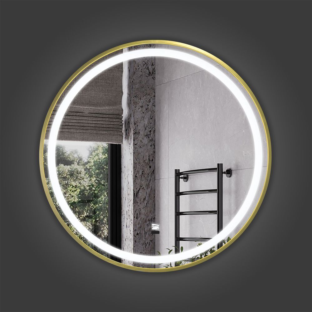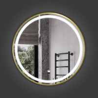 Круглое зеркало в золотой алюминиевой раме Comforty Лея-60 LED-подсветка, бесконтактный сенсор