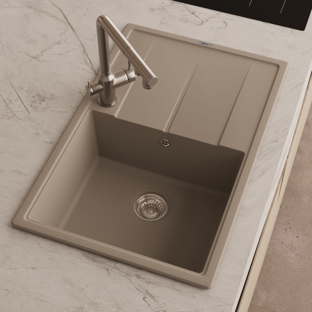 Кухонная мойка ABBER Quarz AQ2904S песочный, материал изготовления кварцевый композит. Корзинчатый вентиль идет в комплекте.