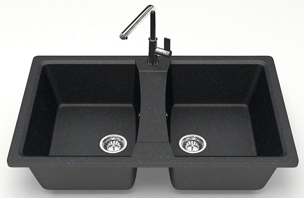 Кухонная мойка AZARIO Elmas 780х500х190 двойная, искусственный мрамор, черный CS00078333