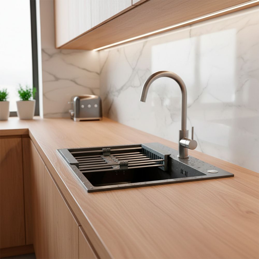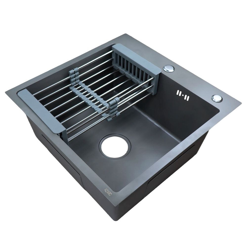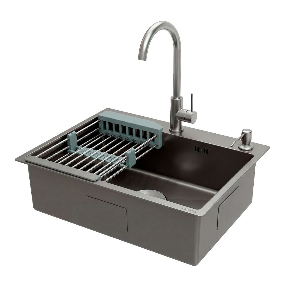 Кухонная мойка AZARIO NICOLE 500х500х220 нержавеющая сталь, в комплекте сифон, диспенсер, коландер, серая соты (AZG5050H)