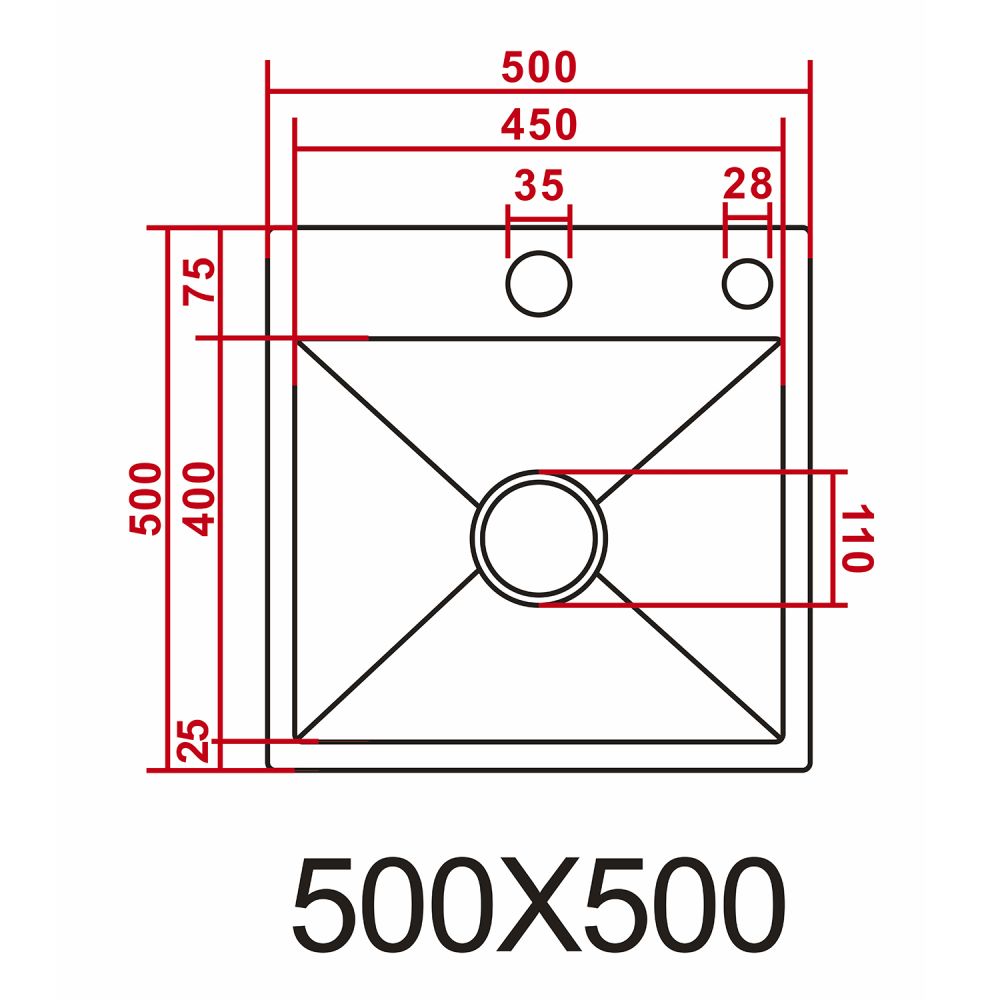 Кухонная мойка AZARIO NICOLE 500х500х220 нержавеющая сталь, серая соты AZG5050H