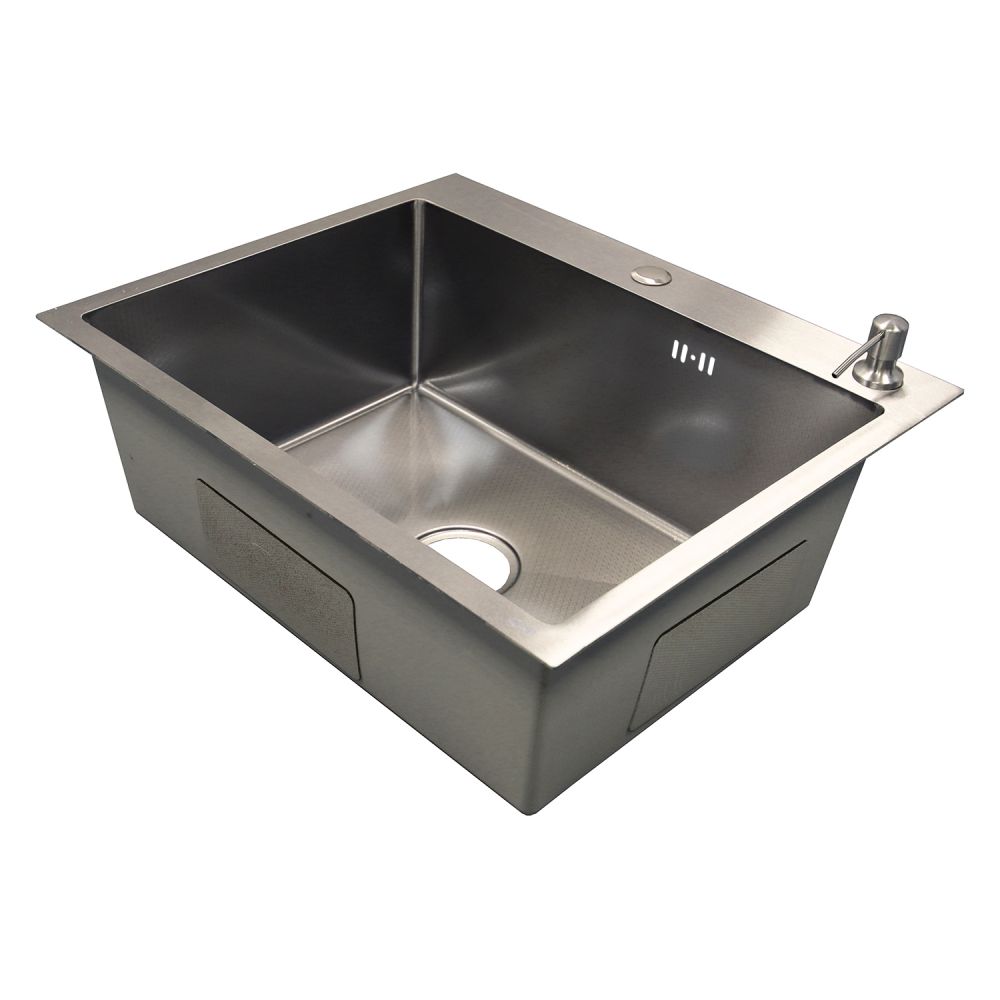 Кухонная мойка AZARIO NICOLE 500х500х220 нержавеющая сталь, в комплекте сифон, диспенсер, коландер, серебро (AZS5050N)