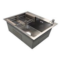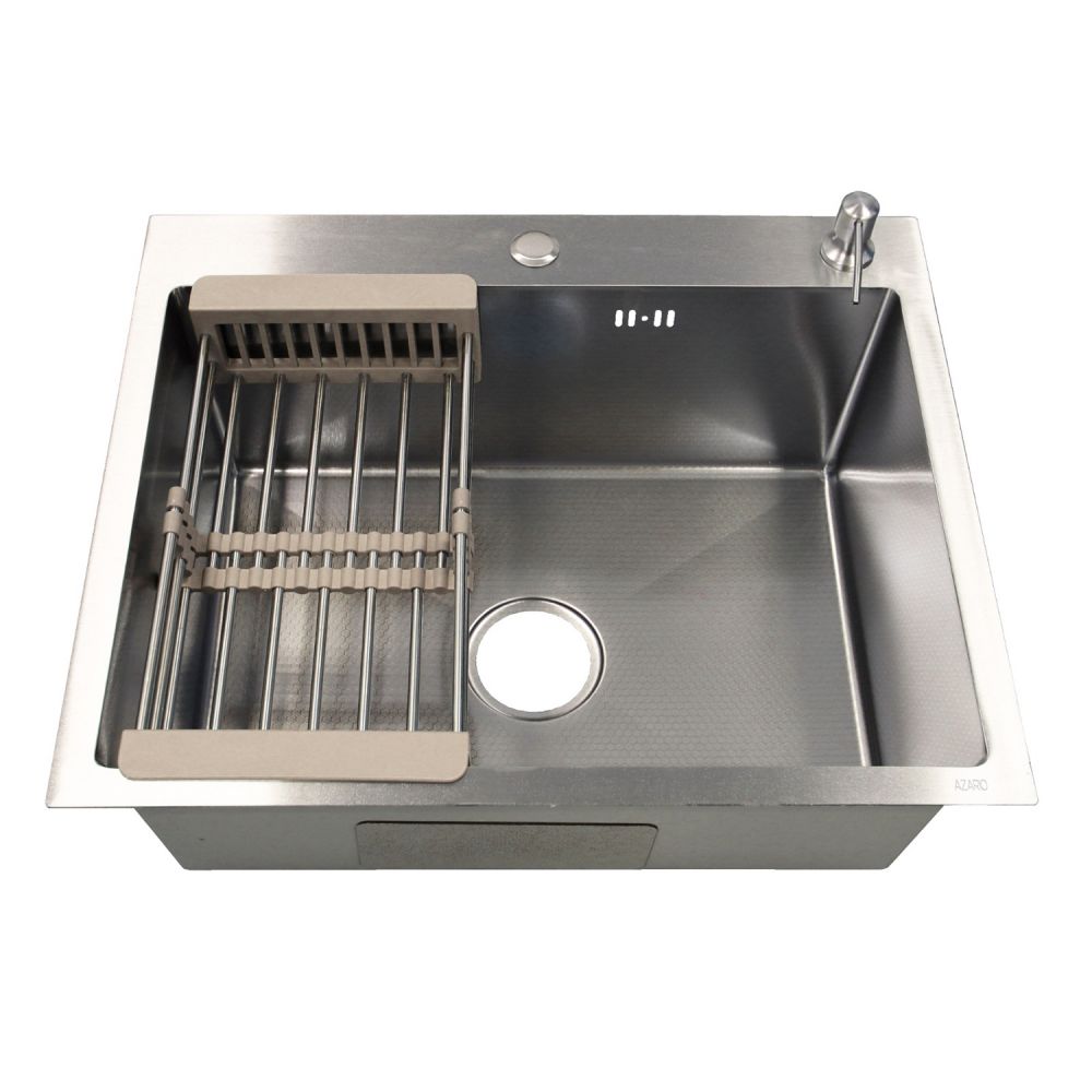 Кухонная мойка AZARIO NICOLE 500х500х220 нержавеющая сталь, в комплекте сифон, диспенсер, коландер, серебро соты (AZS5050H)