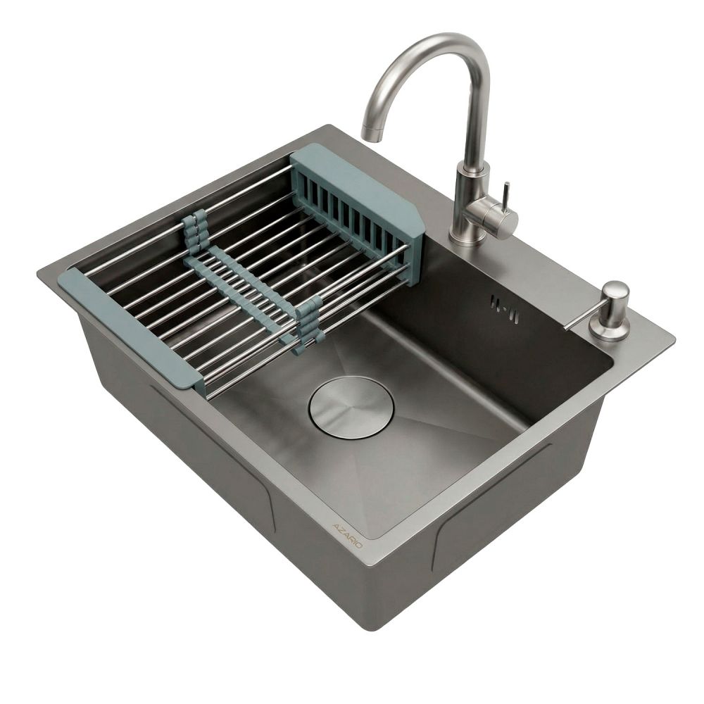 Кухонная мойка AZARIO NICOLE 600х500х220 нержавеющая сталь, в комплекте сифон, диспенсер, коландер, серая соты (AZG6050H)
