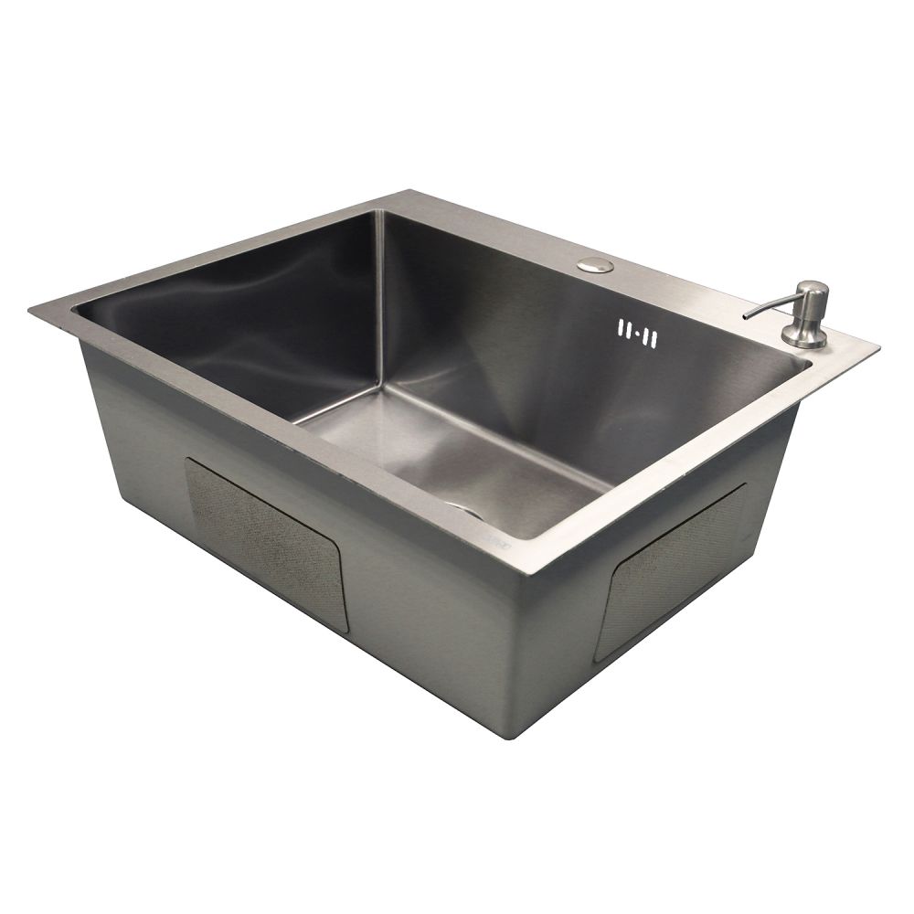 Кухонная мойка AZARIO NICOLE 600х500х220 нержавеющая сталь, в комплекте сифон, диспенсер,коландер, серебро соты (AZS6050H)