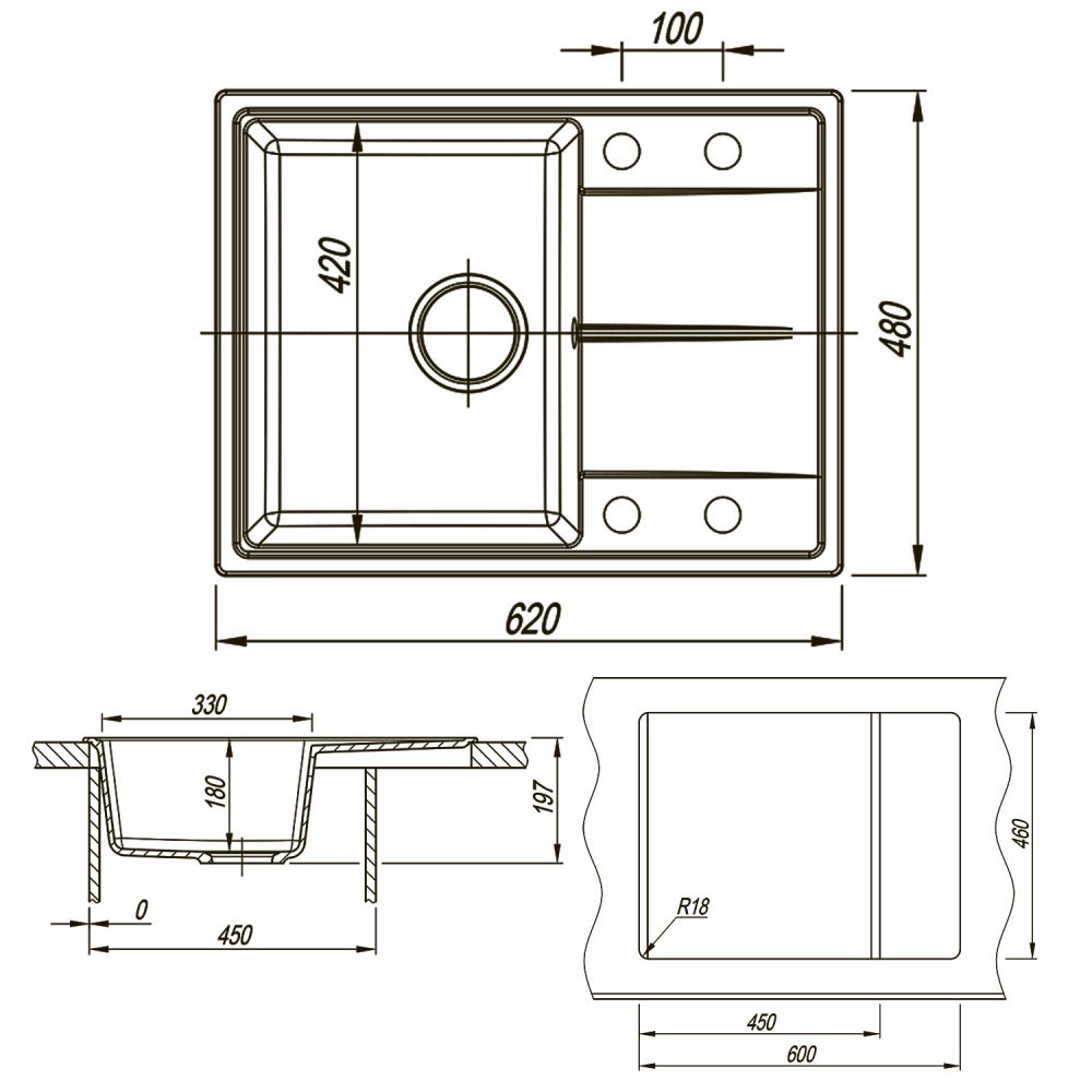 Кухонная мойка AZARIO Tavas 620х480х197 кварцевая, прямоугольная, Белый CS00097670