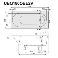 UBQ 180 OBE 2V-01 OBERON Solo Ванна 180x80, с ножками, белая, материал кварил Quaryl®, вкл. сверло для перелива