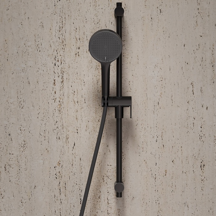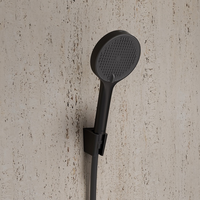 Ручная лейка для душа Aiger (диаметр 120 мм) в черном матовом цвете выглядит красиво, стильно и современно благодаря однотонной темно-серой лицевой части и силиконовым форсункам в тон. Лейка будет гармонично сочетаться с любым одноцветным смесителем и душевым шлангом благодаря универсальному соединению G ½. Рычажный переключатель на корпусе позволяет комфортно управлять тремя режимами (Rain, Massage, Rain&Massage). Кнопка на внешней стороне лейки включает отдельный режим MonoClean – мощную струю из торцевой части лейки, удобную для бытовых задач типа ополаскивания ванны или душевой кабины. Три микроотверстия в форсунках лейки позволяют добиться одновременно объемного и мягкого потока воды.  За лейкой просто ухаживать: мягкие силиконовые форсунки легко очищаются от загрязнений и известкового налета – достаточно провести по ним пальцем. Цветное покрытие устойчиво к коррозии, появлению сколов и потускнению (при должном уходе). На протяжении многих лет оно будет выглядеть как новое. Гарантия на душевые аксессуары IDDIS® – 3 года. (с) Авторский текст, сентябрь 2025 г.