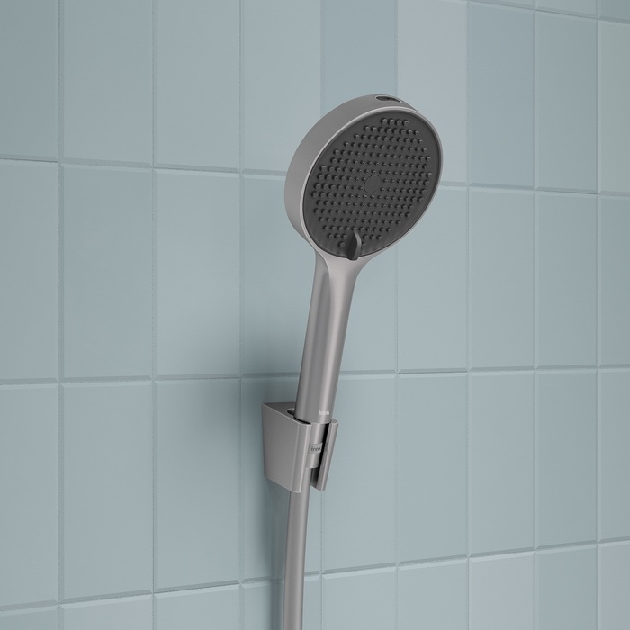 Ручная лейка для душа Aiger (диаметр 120 мм) в трендовом оттенке матового хрома выглядит красиво, стильно и современно благодаря однотонной темно-серой лицевой части и силиконовым форсункам в тон. Лейка будет гармонично сочетаться с любым одноцветным смесителем и душевым шлангом благодаря универсальному соединению G ½. Рычажный переключатель на корпусе позволяет комфортно управлять тремя режимами (Rain, Massage, Rain&Massage). Кнопка на внешней стороне лейки включает отдельный режим MonoClean – мощную струю из торцевой части лейки, удобную для бытовых задач типа ополаскивания ванны или душевой кабины. Три микроотверстия в форсунках лейки позволяют добиться одновременно объемного и мягкого потока воды.  За лейкой просто ухаживать: мягкие силиконовые форсунки легко очищаются от загрязнений и известкового налета – достаточно провести по ним пальцем. Матовое хромированное покрытие устойчиво к коррозии, появлению сколов и потускнению (при должном уходе). На протяжении многих лет оно будет выглядеть как новое. Гарантия на душевые аксессуары IDDIS® – 3 года. (с) Авторский текст, сентябрь 2025 г.