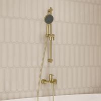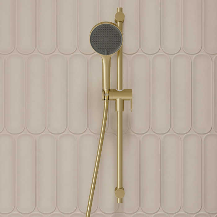 Ручная лейка для душа Aiger (диаметр 120 мм) в трендовом оттенке матового золота выглядит красиво, стильно и современно благодаря однотонной темно-серой лицевой части и силиконовым форсункам в тон. Лейка будет гармонично сочетаться с любым одноцветным смесителем и душевым шлангом благодаря универсальному соединению G ½. Рычажный переключатель на корпусе позволяет комфортно управлять тремя режимами (Rain, Massage, Rain&Massage). Кнопка на внешней стороне лейки включает отдельный режим MonoClean – мощную струю из торцевой части лейки, удобную для бытовых задач типа ополаскивания ванны или душевой кабины. Три микроотверстия в форсунках лейки позволяют добиться одновременно объемного и мягкого потока воды.  За лейкой просто ухаживать: мягкие силиконовые форсунки легко очищаются от загрязнений и известкового налета – достаточно провести по ним пальцем. Цветное покрытие устойчиво к коррозии, появлению сколов и потускнению (при должном уходе). На протяжении многих лет оно будет выглядеть как новое. Гарантия на душевые аксессуары IDDIS® – 3 года. (с) Авторский текст, сентябрь 2025 г.