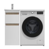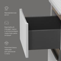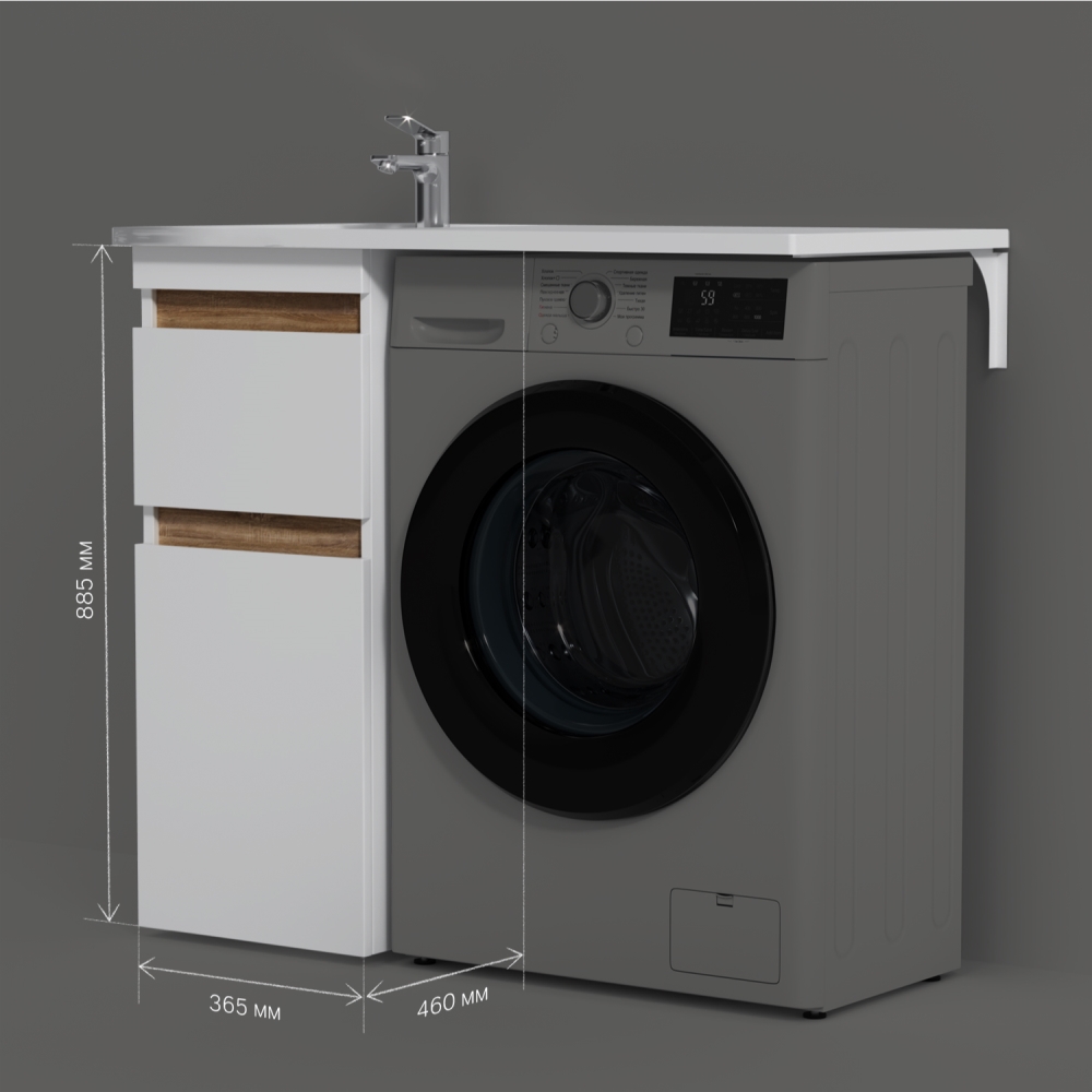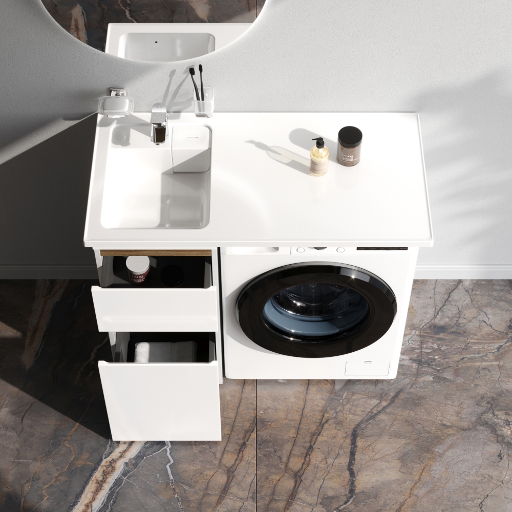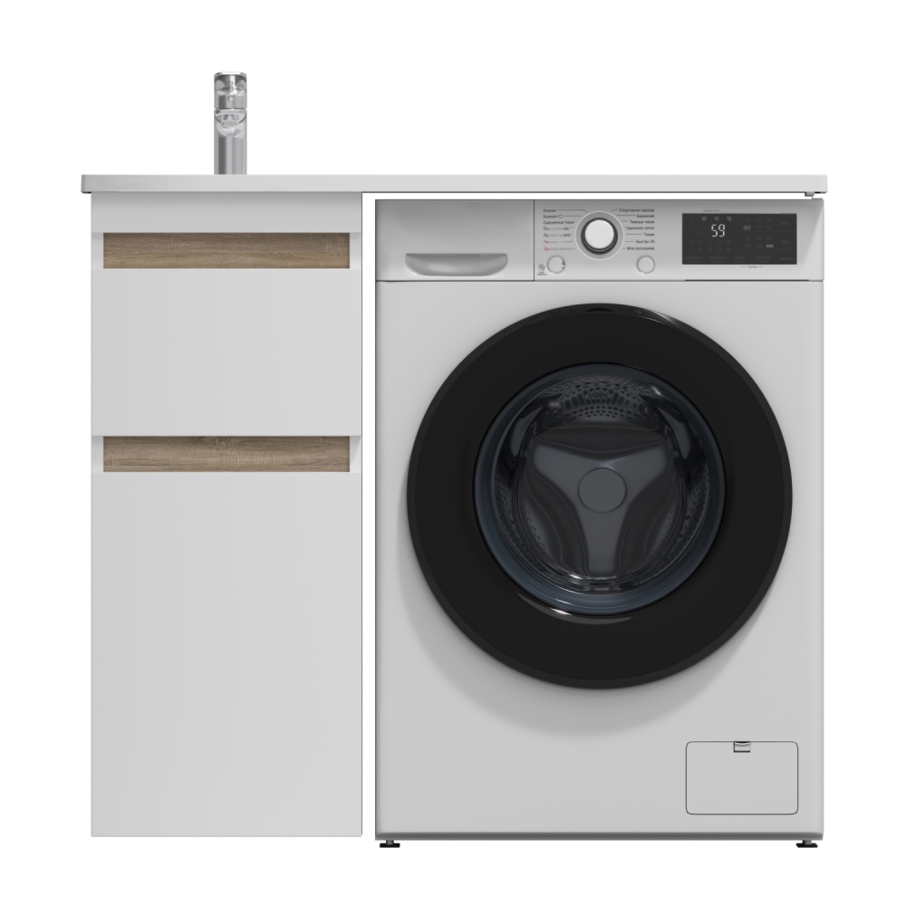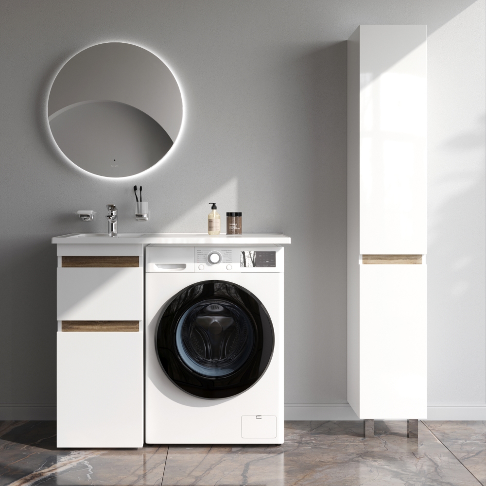 Долгожданное расширение в мебели X-Joy. Самое оптимальное и функциональное решение для организации пространства ванной комнаты с учетом размещения в ней стиральной машины. Подходит для интеграции с узкими стиральными машинами (глубиной от 32 до 45 см). Эстетичное сочетание цветов и фактур от дизайн-бюро Danelon Meroni (Великобритания & Италия): белые глянцевые фасады дополнены отделкой под светлое дерево. Глубокие удобные ящики позволяют организовать и хранить все необходимые средства под рукой. Внутреннее покрытие каждого ящика выполнено в современном цвете Anthracite и имеет противоскользящее покрытие. Накладная раковина из литьевого мрамора белоснежного цвета оснащена съемной мыльницей специальным бортиком для защиты от пролива воды за мебель и скрытым сливом. Экологически чистые и удивительно долговечные полиакриловые эмали – специальная технология покраски в 7 слоев превосходит технологию нанесения автоэмали у ведущих немецких марок и обеспечивает насыщенный цвет в течение всего срока службы (от 10 лет). Боковины базы выполнены из влагостойкой ЛДСП что позволяет продлевать срок службы мебели до максимального в индустрии.