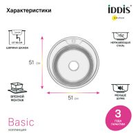 Мойка, нержавеющая cталь, полированная, D510, Basic, IDDIS, BAS51P1i77