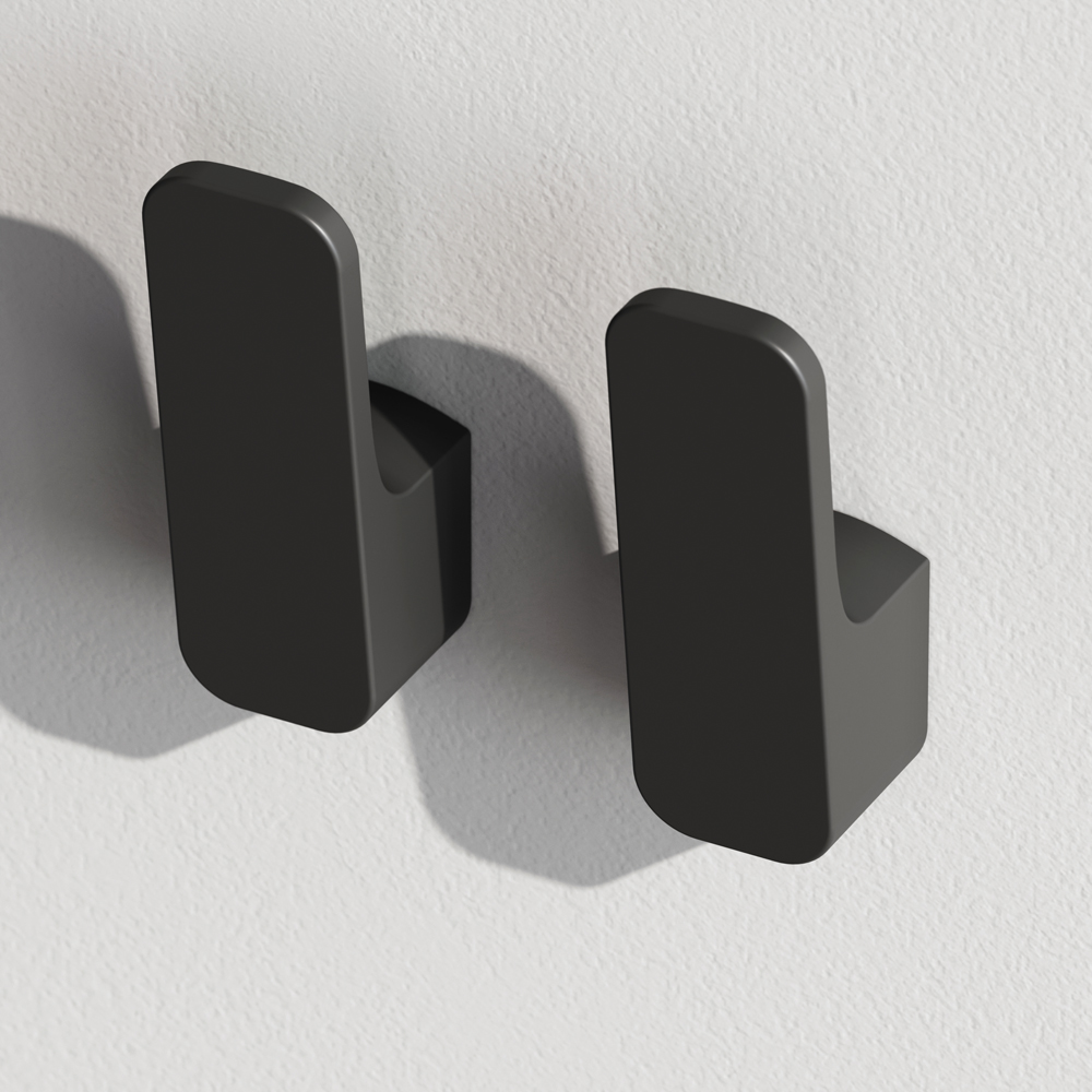 Коллекция аксессуаров Func сочетает в себе яркий дизайн безупречную эстетику и выводит функциональность каждого изделия на абсолютно новый уровень. Дизайн этой выдающейся коллекции принадлежит авторству всемирно известной студии Design3 Германия. Для ценителей функционального использования пространства ванной комнаты создан комплект крючков для полотенец которые по форме так напоминают современные смартфоны. Аксессуар выполнен в матовом черном цвете. Все аксессуары Func отличает сверхпрочная конструкция и бескомпромиссное качество. В комплекте скрытые крепления установка изделия не потребует от вас профессиональных навыков.
