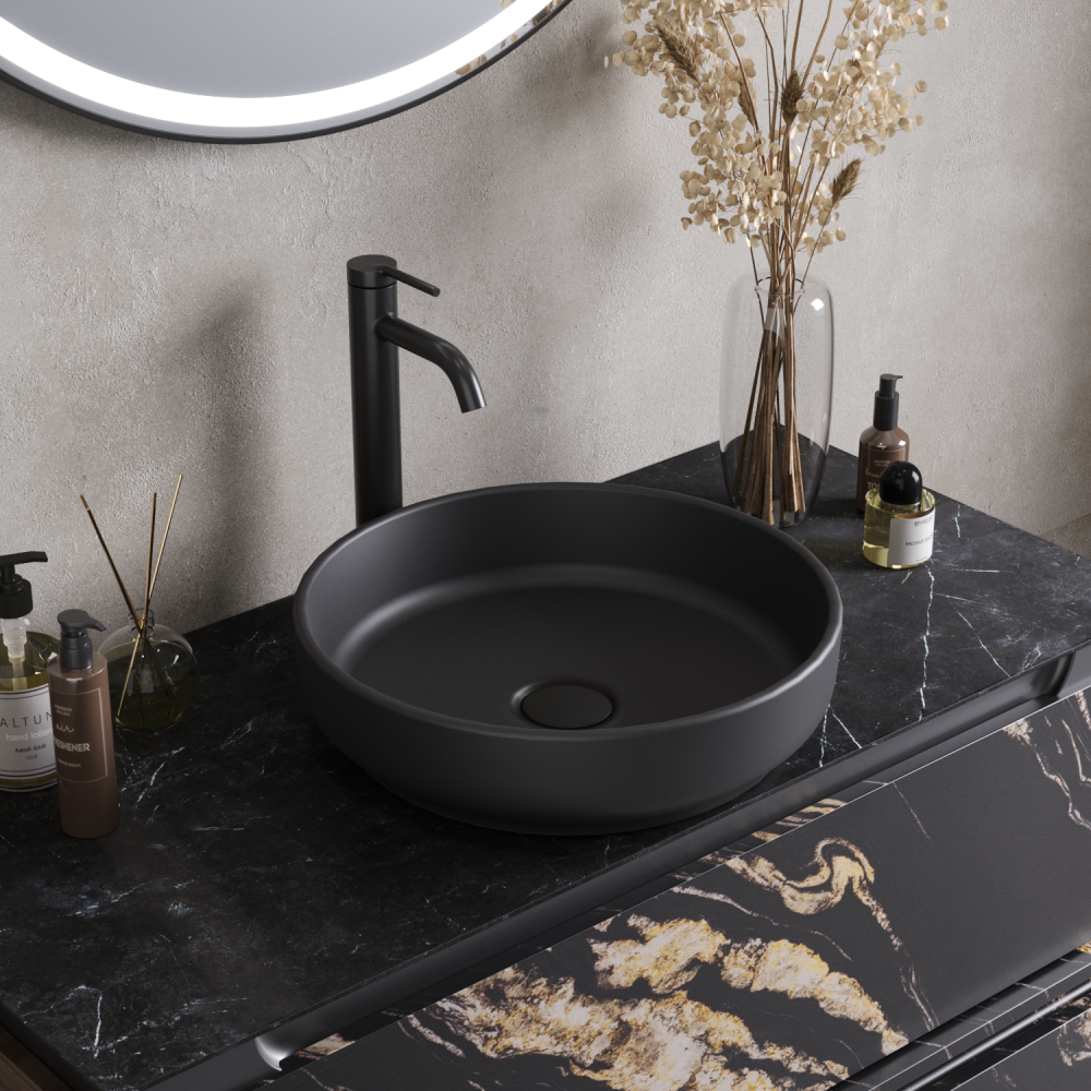 Накладная раковина CEZARES CZR-6595-GO. Материал керамика. Цвет серый матовый. Выполненная в современном стиле. Форма круглая