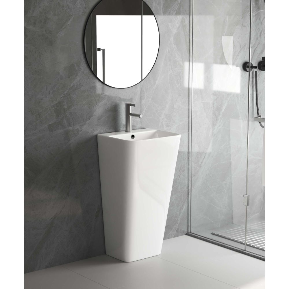 Умывальник напольный пьедестальный из фарфора – элегантное и функциональное решение для ванной комнаты или санузла, сочетающее в себе классический дизайн и долговечность. Основные характеристики: ✔ Материал: высококачественный фарфор, обеспечивающий гладкую поверхность, устойчивость к загрязнениям и простоту ухода. ✔ Конструкция: состоит из монолитной чаши умывальника-пьедестала (стойки), что придаёт сантехнике изысканный и завершённый вид. ✔ Дизайн: классическая квадратная форма, гармонично вписывающаяся в интерьеры в стиле ретро, прованс или традиционной классики. ✔ Практичность: устойчивая напольная установка, удобная высота для комфортного использования. ✔ Цвет: белый. Преимущества: