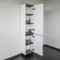 Название: Шкаф-колонна Коллекция: Лозанна Артикул: 00-00017838CF Варианты цвета: белый Материал корпуса: влагостойкое ЛДСП Габариты (ШхВхГ): 400*1900*300 мм Напольная шкаф-колонна отличное решение для хранения разных предметов необходимых в ванной комнате. За верхней дверцей три полки, за нижней одна. Фасады изготовлены из МДФ и окрашены белой глянцевой эмалью. Дверцы могут быть подвешены как в правом, там и в левом исполнении. Петли оборудованы механизмами плавного закрывания. Инструкция для мебели для ванных комнат COMFORTY