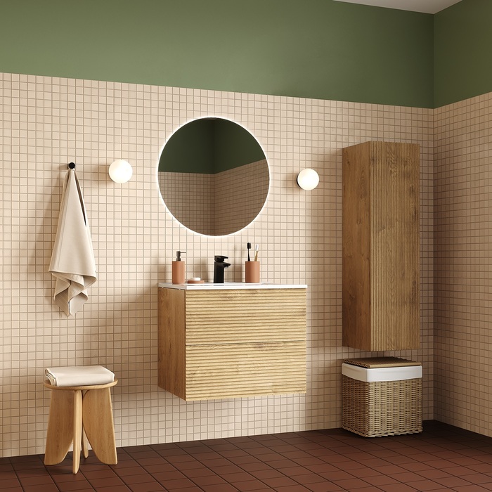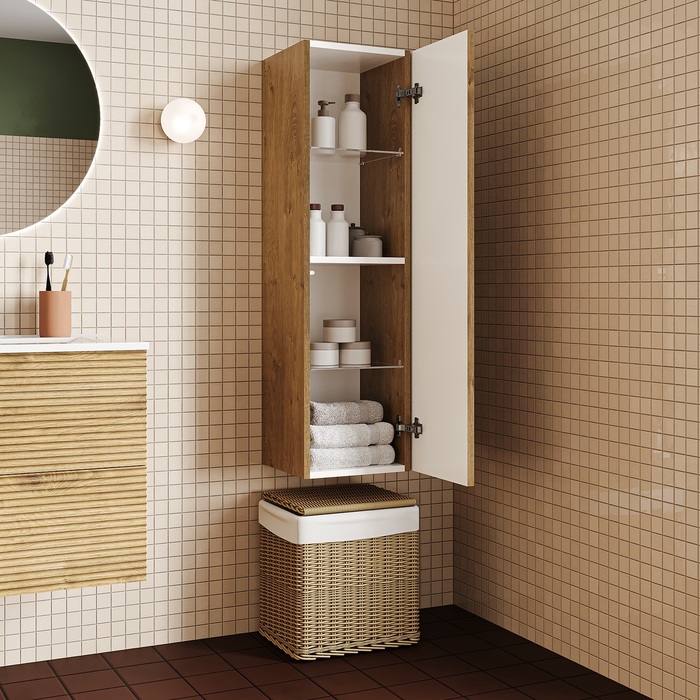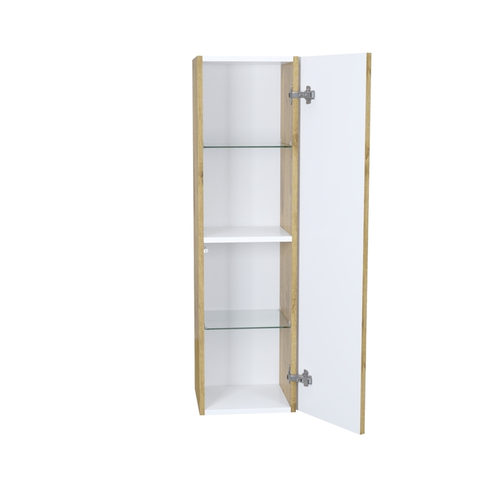 Подвесной пенал для ванной комнаты Bild – красивый дизайн со структурной вертикальной фрезеровкой в сочетании с теплым оттенком дуба, удобством и практичностью. Универсальная ориентация: пенал можно подвесить так, чтобы дверки открывались в удобную вам сторону (пенал можно перевернуть на 180 градусов, при этом перевешивать дверцы не нужно). - Материал фасадов – МДФ с покрытием ПВХ-пленкой. Она разработана для использования в помещениях с высокой влажностью и сохранит первоначальный вид мебели надолго (при должном уходе). Материал боковин – ЛДСП. - Стеклянные полки (толщина 5 мм) надежно фиксируются специальными креплениями, что предотвращает риск их случайного повреждения. - Можно самостоятельно выбрать, куда будет открываться дверка: корпус пенала оборачиваемый, поэтому универсальный. - Современный механизм открытия Push-to-Open – открывается нажатием на фасад. - Надежная фурнитура рассчитана на 30 000 открываний – это более 10 лет исправной работы. - В комплекте крепеж для монтажа пенала. Гарантия на мебель IDDIS® – 3 года. (с) Авторский текст, июль 2024 г.