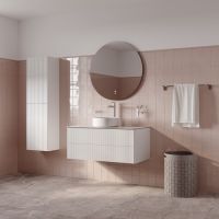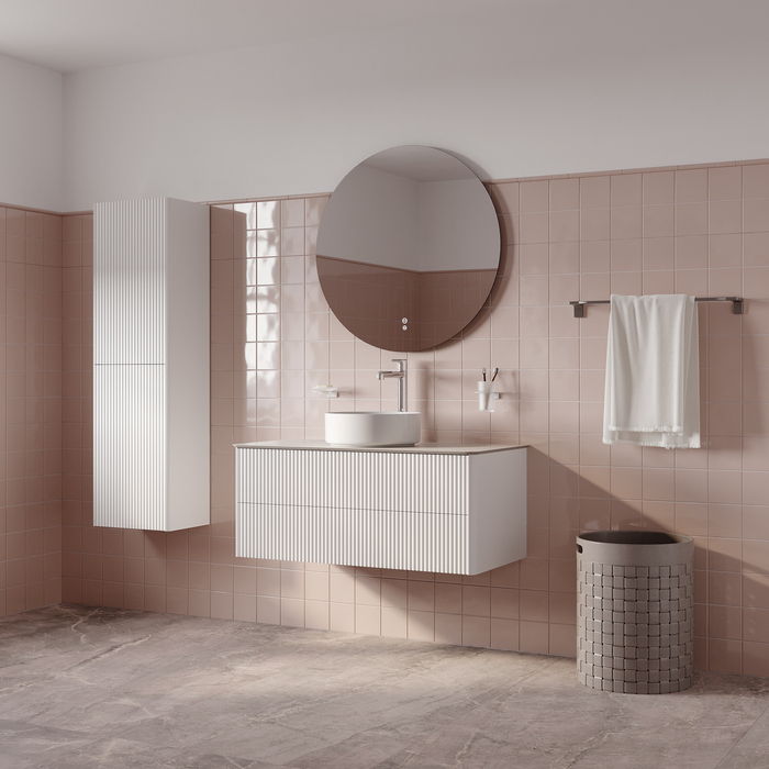 Подвесной пенал для ванной в классическом белом цвете с трендовой вертикальной фрезеровкой дополняет коллекцию мебели Aiger. Материал фасадов и боковин – МДФ, покрытие – водоотталкивающая матовая ПВХ-пленка с эффектом soft touch. Устойчива к влаге, приятна на ощупь, легко моется. Дверки мягко открываются нажатием на фасад за счет механизма Push-to-Open – удобно и легко в повседневной эксплуатации. Толкатели с регулировкой обеспечивают возможность настройки плавности открытия Push-to-Open. Надежная фурнитура Hettich: петли оснащены доводчиками, навесы выдерживают до 50 кг. Универсальная ориентация – дополнительные гнезда для навесов позволяют установить пенал с открытием дверей в левую или правую сторону. Стеклянные полки регулируются по высоте +-64 мм. Продуманный дизайн: утопленные фасады обеспечивают премиальный внешний вид за счет отсутствия неровных стыков элементов, скругленные боковины выглядят эстетично и обеспечивает безопасность эксплуатации. Гарантия на мебель IDDIS® – 3 года. (с) Авторский текст, март 2025 г.