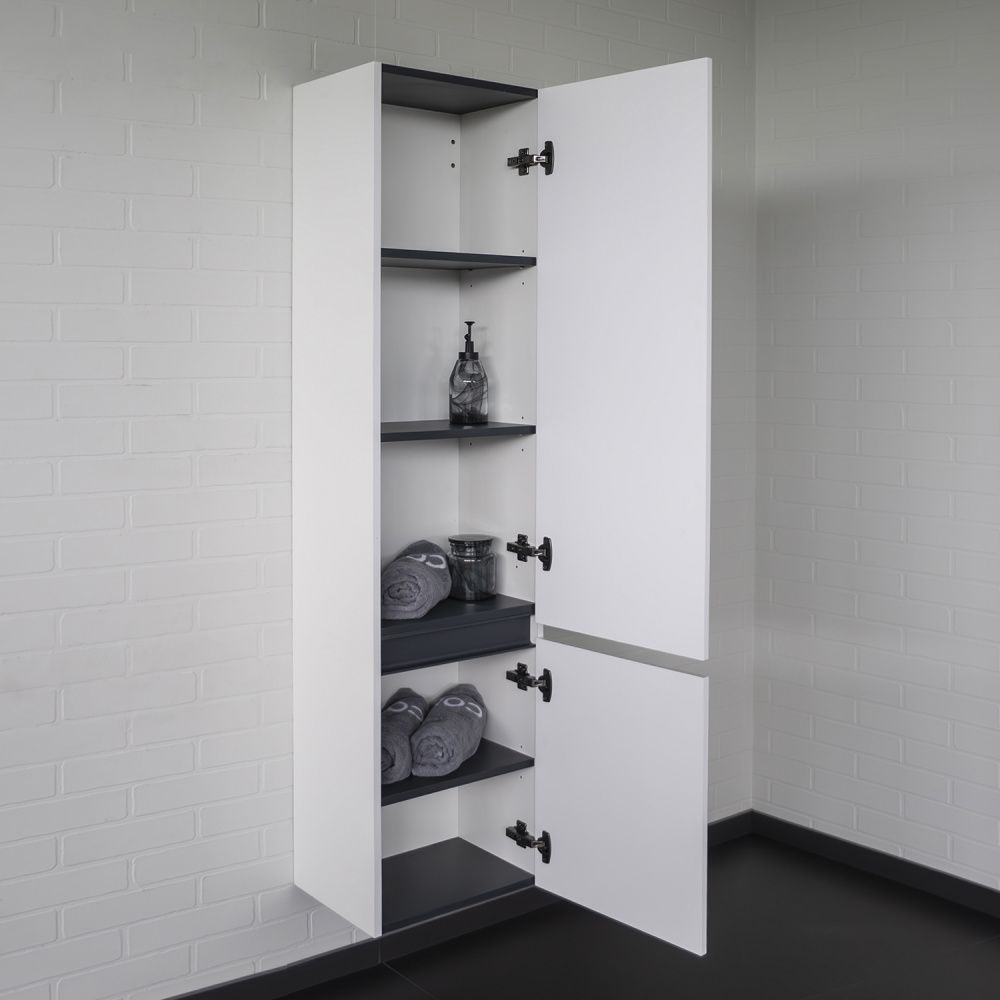 Название: Шкаф-колонна Коллекция: Лозанна Артикул: 00-00017837CF Варианты цвета: белый Материал корпуса: влагостойкое ЛДСП Габариты (ШхВхГ): 400*1600*300 мм Подвесная шкаф-колонна отличное решение для хранения разных предметов необходимых в ванной комнате. За верхней дверцей три полки, за нижней одна. Фасады изготовлены из МДФ и окрашены белой глянцевой эмалью. Дверцы могут быть подвешены как в правом, там и в левом исполнении. Петли оборудованы механизмами плавного закрывания. Инструкция для мебели для ванных комнат COMFORTY