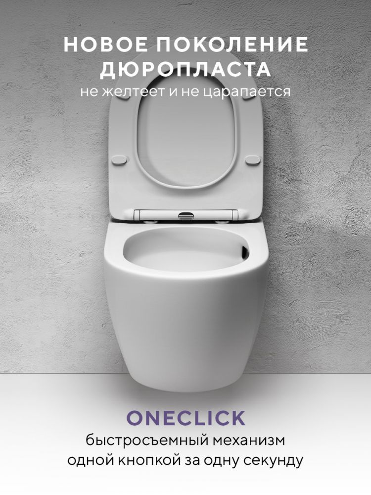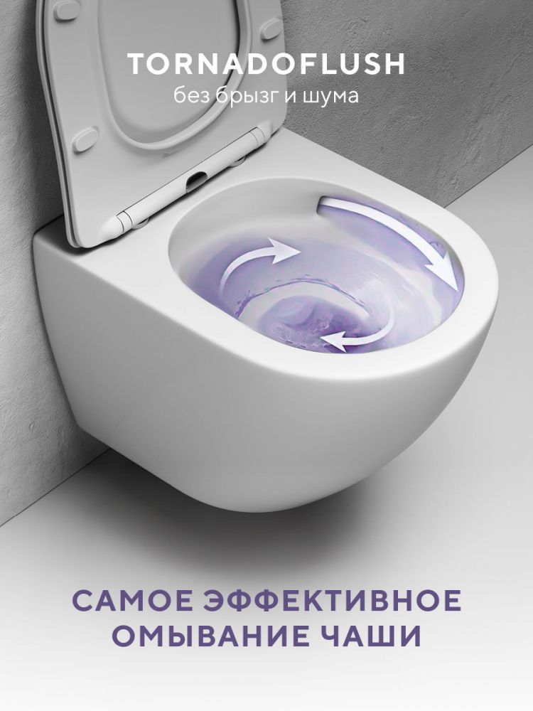 Подвесной унитаз Arcade Ceramic с безободковой чашей TornadoFlush и ультратонким сиденьем OneClick, белый глянец ARC60801WH