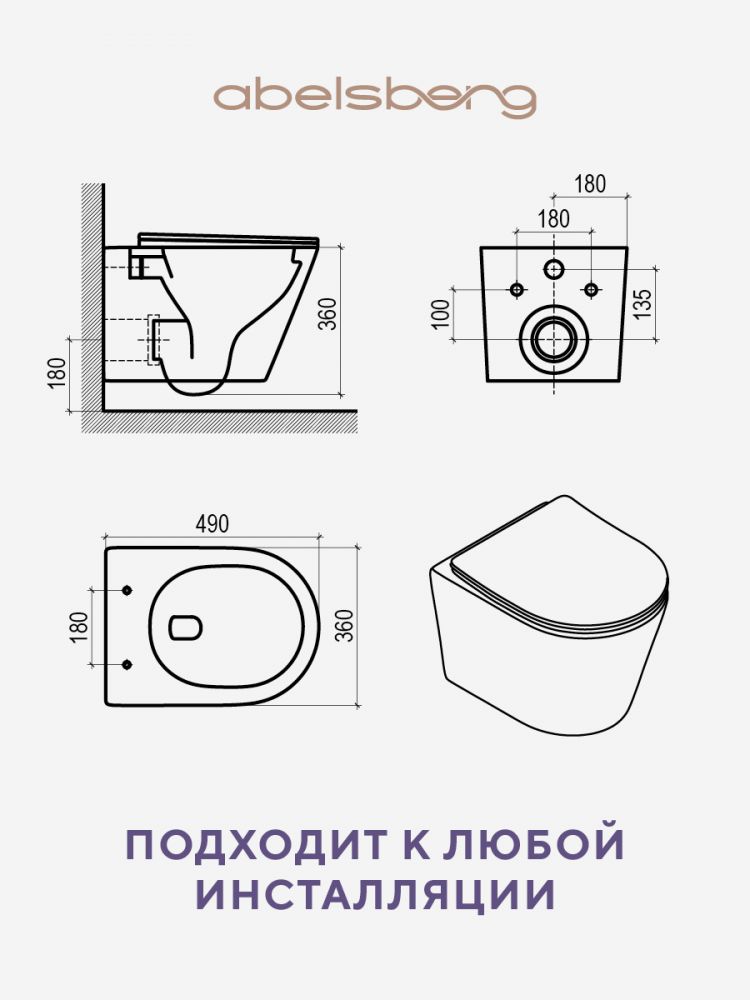 Подвесной унитаз Abelsberg Element Ceramic TornadoFlush ELC70701WH