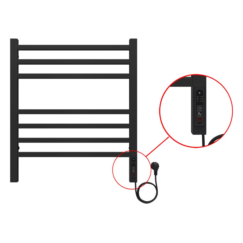 Полотенцесушитель электрический AZARIO ANCONA 500/600 квадрат, 7 секций, диммер справа, черный (AZ71856B)