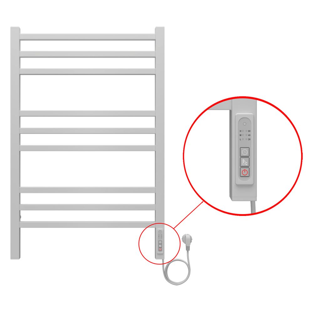Полотенцесушитель электрический AZARIO ANCONA 500/800 квадрат, 9 секций, диммер справа, белый (AZ71858W)
