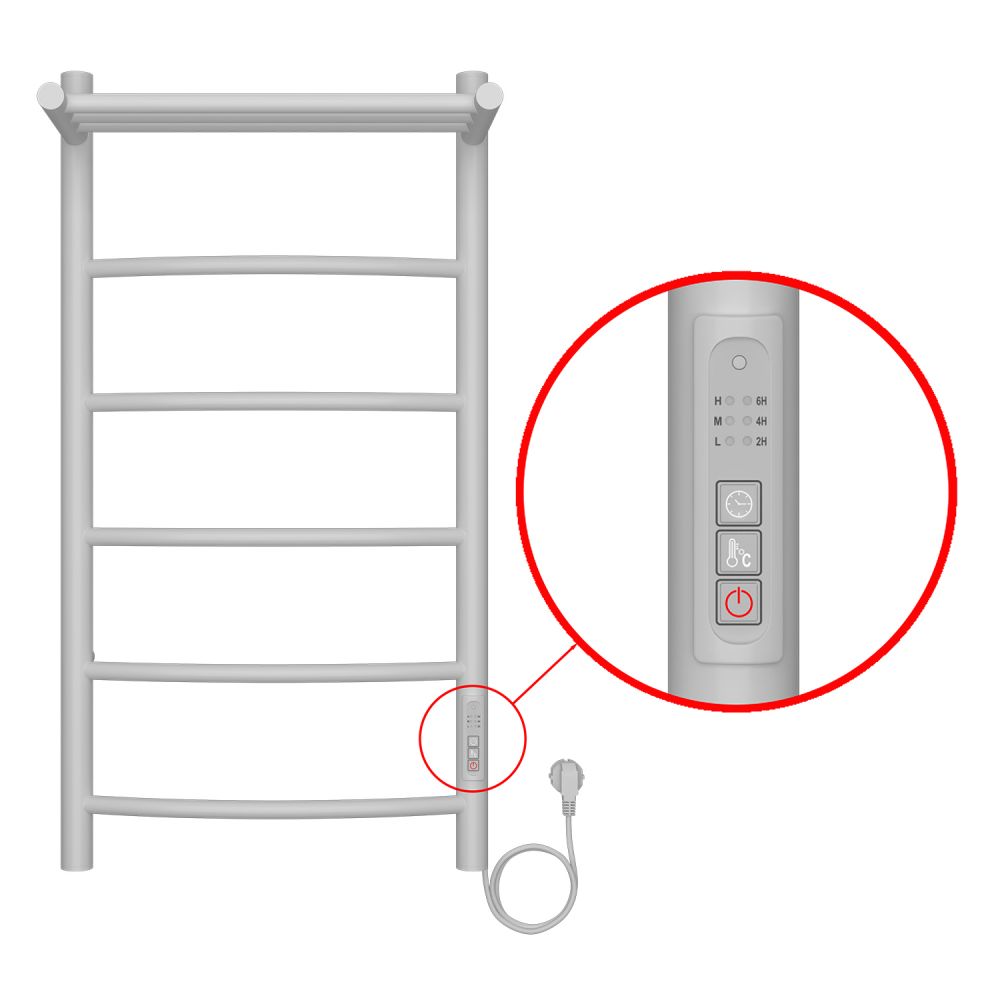 Полотенцесушитель электрический AZARIO VERONA 400/800 5 секций, с полкой, диммер справа, белый (AZ04848PW)