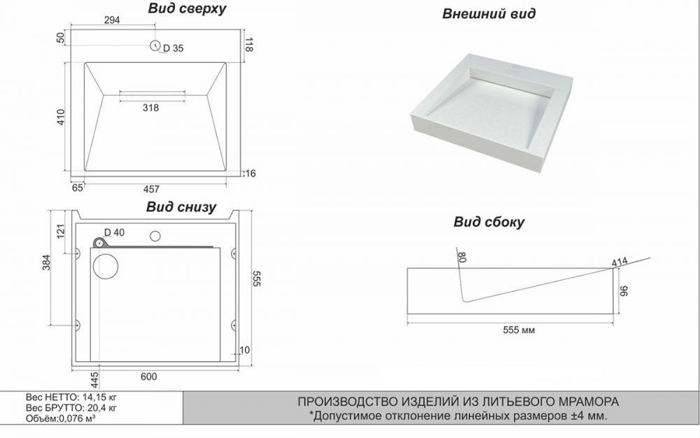 Раковина Azario Domino 600х555х80 литьевой мрамор, белая CS00082282